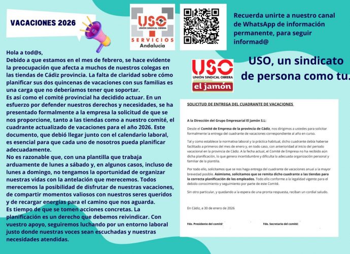 🗣️ DESDE USO DE ANDALUCÍA, OS HACEMOS UN LLAMAMIENTO A LA PARTICIPACIÓN de todos los afiliados y afiliadas de la USO de Andalucía, cualquiera que sea su provincia, Federación y sector, y la clase trabajadora en general. Compartimos recorrido con el resto de sindicatos minoritarios de la provincia de Cádiz,Leer más