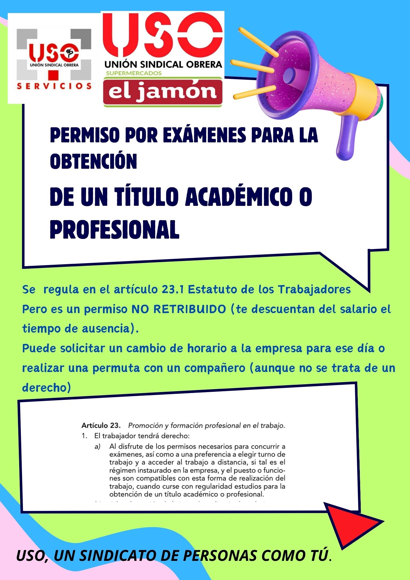 Sección Sindical de USO en los supermercados El Jamón